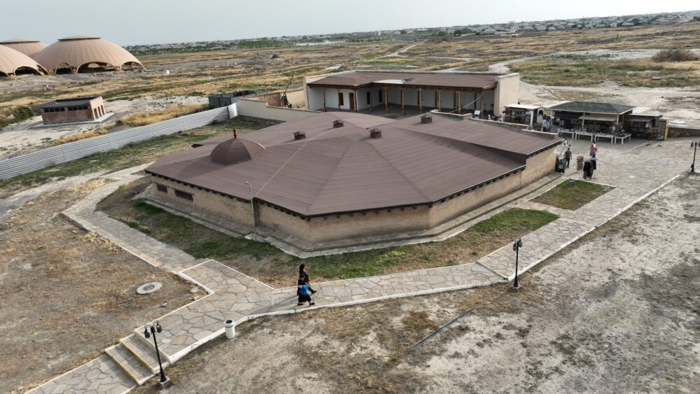 In August of this year, the exhibition of the complex was expanded. A section of the underground structure, which had remained open despite previous archaeological excavations, was conserved and converted into a museum display. This new installation is dedicated to the household and culinary zone of the complex. It features 19th-century artifacts from the dining hall (Askhan) of the Khoja Ahmed Yasawi Mausoleum, including two large wooden bowls (astau) used for serving the festive porridge “Әlim botqasy,” ladles, and clay hums and jugs for storing grain and other products. Exhibition labels and annotation texts have been updated.