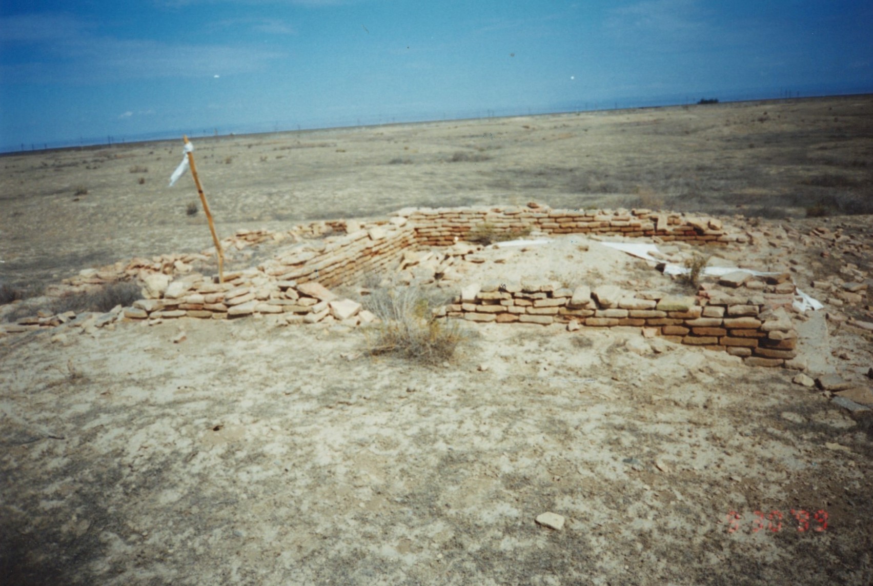 The Mausoleum of Karakhan Ata is located 44 km northwest of the city of Turkistan, within the territory of the Zhibek Zholy rural district, approximately 200–300 meters east of the ancient city of Sauran. Coordinates 43˚31.022΄, 067˚46.540΄.At the site, the remains of ruined mausoleums built of baked bricks have been preserved, along with traces of unmarked burials. The necropolis, enclosed by walls made of adobe bricks (pakhsa), covers an area of 60 x 80 meters, but today only earthen ramparts remain from the original enclosure. According to local legend, in the largest tomb lies Karakhan Ata. The story tells that long ago, a severe disease known as “Karakhan disease” struck the livestock of Sauran. Once one shepherd decided to bring his herd to spend the night near the Mausoleum of Karakhan Ata, after which the animals were spared from the illness. Since then, this site has been regarded as sacred and has become a place of pilgrimage. Among the locals, it is also known as “Karakhan Ata” or “Karakhan Auliye”.