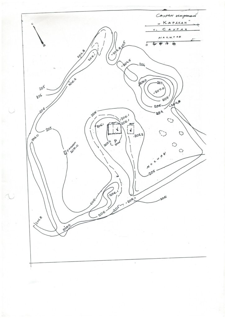 The necropolis is associated with the names of several respected people of Sauran, including Khan of the White Horde Sasy Buka, who played an important role in the city’s history (d. 1320). In foundations of some mausoleums preserved traces of underground crypts (murdekhana). Archaeological data indicates that the Karakhan Ata necropolis began to form even before the origion of the city of Sauran. In stories, Karakhan Ata is mentioned as one of the “Nine Sacred Saints of Sauran”, who are especially revered in the region.