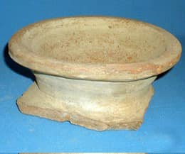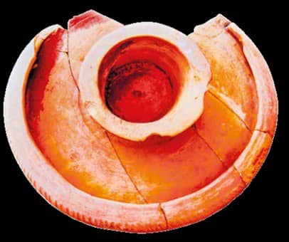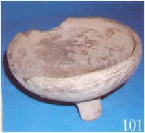 A three-legged tabletop found in the citadel of the city of Zhuantobe deserves special attention. At the depth there is a mark similar to the letter «zh». The legs are oval. Similar tabletops with round legs have already been found in this area. According to researcher N.P. Ostroumov, a surveyor named K.D. Baronin from Zhuantobe was one of the first to discover such a tabletop made of clay. In Central Asia, such tabletops are often found among monuments characteristic of the urban culture of the 8th-9th centuries. Studying models of tabletops found in medieval cities of Central Asia and Kazakhstan, G.I. Bogomolov and O.A. Papakhristou note that during this period, tabletops with legs and a cup-shaped base were widespread.