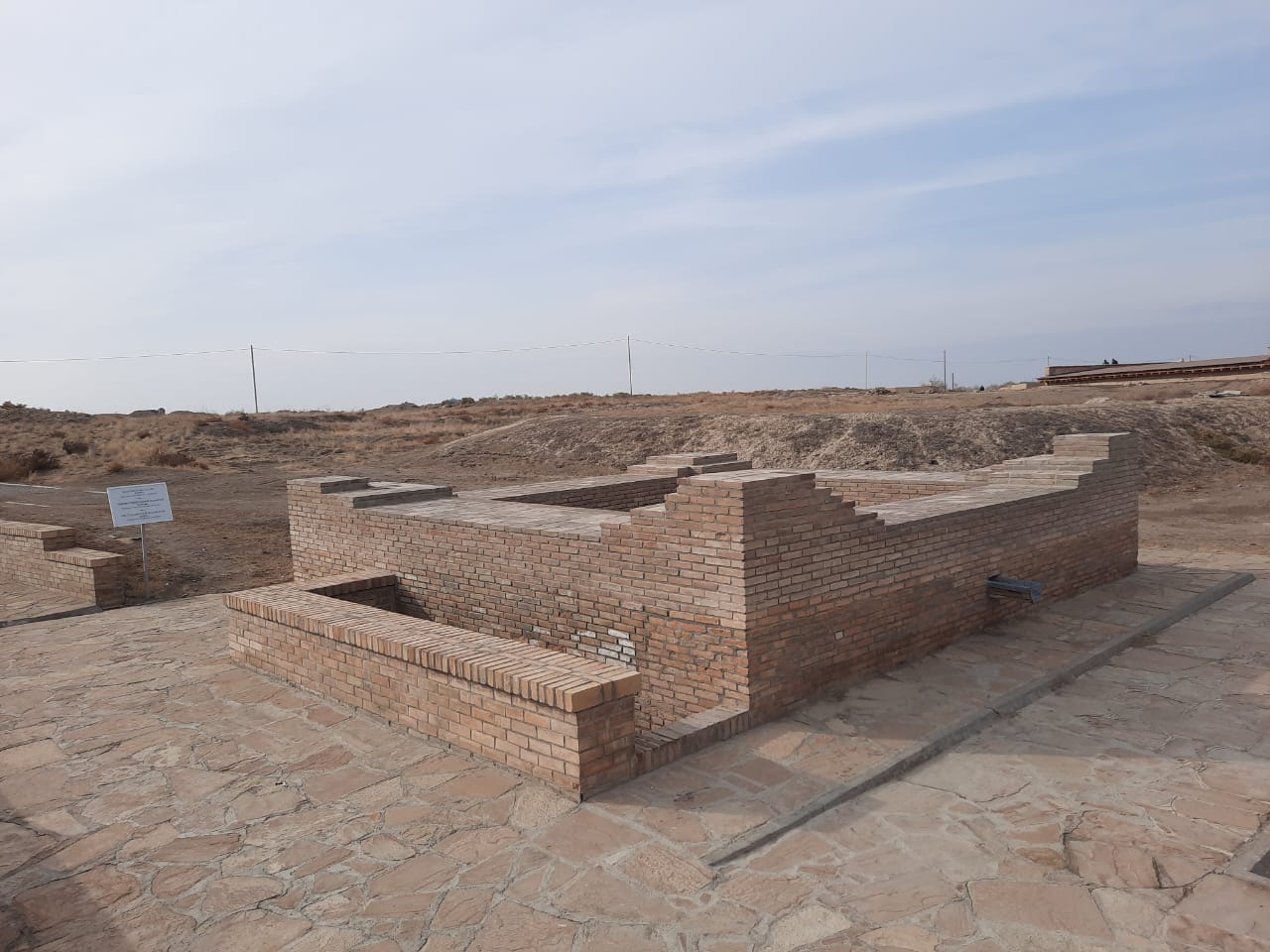 The site is located 45 meters southwest of the Mausoleum of Khoja Ahmed Yasawi and is classified as a monument of national significance. Coordinates: 43˚17.830΄, 068˚16.226΄. The upper part of the structure has not survived, however the underground burial chamber has been preserved in good condition. The interior walls not plastered, and the floor is made of clay. On the floor lie open wooden boxes containing the remains of seven adults and one child. Since the identities of the buried individuals remain unknown, the monument has been given the provisional name “Unnamed Mausoleum”. The site is listed in the Historical and Cultural Monuments of Kazakhstan under No. 590.8 in the publication Compendium of Monuments of History and Culture of Kazakhstan for the South Kazakhstan Region (1994).  The designation “sagana” (a rectangular enclosure around a tomb), found in some sources, is considered inaccurate. According to architectural terminology, a “sagana” refers to an open-top quadrangular structure surrounding a burial. In contrast, this object is an underground structure covered with a dome. Inside, there are four arched niches measuring 0.8 m deep, 4.33 m wide and 2.8 m high. The mausoleum served both as a family burial vault and as a funerary mausoleum. It is likely that the deceased were not buried underground but were instead laid on the floor wrapped in shrouds, a common practice for crypt burials. The terms “lahat”, “murdekhana” or “meyithana” (burial chamber or crypt) would be more accurate for describing this structure. Only the 0.6 m high foundation, which corresponds to the underground room (6.76 m in length), has been preserved from the above-ground part of the mausoleum. The overall dimensions of the structure are 9 x 8.75 m. The entrance is located on the southwest side, with a height of 2.5 m, a width of 0.8 m, and a depth of 1.2 m. The dome has subsided over time, and its height from base to top is only 1.16 m, indicating a settlement of at least 35 cm. The structure was discovered accidentally in 1975 during earthworks to leveling the site. Archaeologists L.B. Yersakovich and B. Nurmukhanbetov, along with architect A. Ordabayev, subsequently examined it. According to restorers’ recollections, the human remains were sent to Almaty for anthropological analysis. Based on the researchers’ conclusions, the mausoleum functioned as both a family burial vault and a cultic funerary chamber. Archaeological data indicate that the monument was built in the 16th century and was in use until around the mid-17th century, serving for about 150 years.