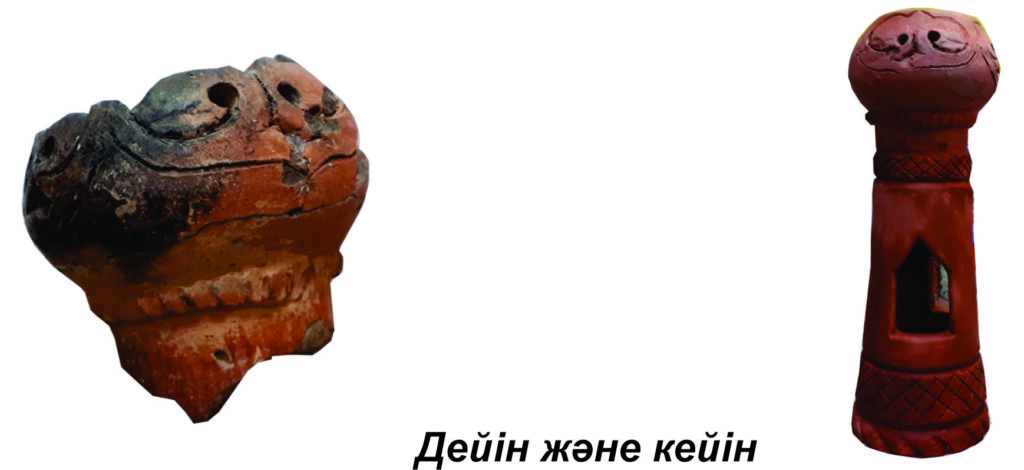 Түтін салғыш түтіндеткіш. 2008 жылы Қаратөбе археологиялық қазба жұмыстары кезінде табылған, ХІІ-ХІІІ ғасырға тән. Түтіндеткіш дөңгелек пішінділеніп, денесіне оймышталып, ою өрнек салынып араларына ойықтар жасалған. Төменгі жағының арасы қуыс, тұғыры болған. Денесімен тұғыры қосылған жеріне өрнектеп жапсырма жапсырылған. Денесінің бір жаны, жоғары жағы, тұғыры сынып жоғалған, әр жерінің ойылған жерлері ұшқан. Бұдан алдын жаңғырту жұмысы жасалынбаған.