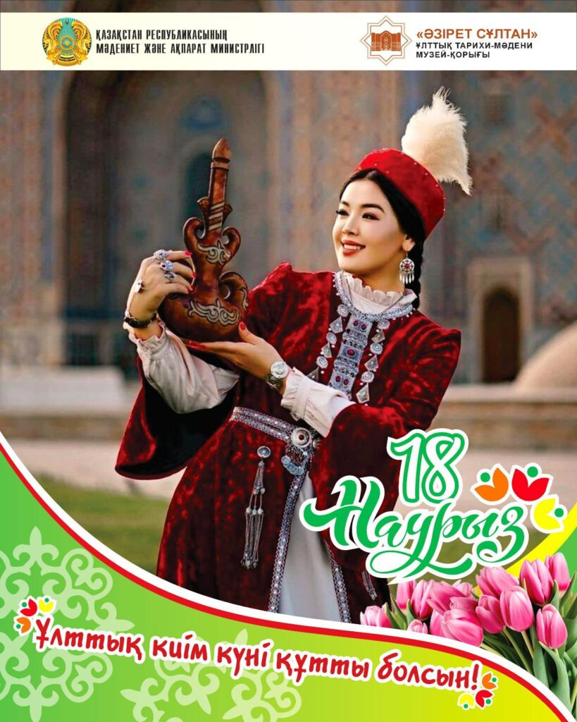🔹  «Әзірет Сұлтан» Ұлттық тарихи-мәдени музей-қорығының ұжымы Ұлыстың ұлы күні – әз-Наурыз мейрамы қарсаңында өтіп жатқан «Наурызнама» онкүндігі аясында 18 наурыз – Ұлттық киім күнін ерекше мәнде атап өтті.