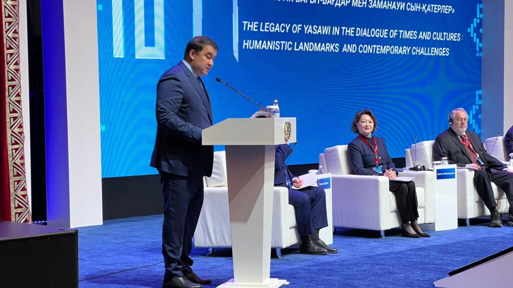 Мемлекеттік кеңесші Ерлан Қарин Түркістанда өтіп жатқан «Заман мен мәдениет диалогындағы Ясауи мұрасы: гуманистік бағыт-бағдар мен заманауи сын-қатерлер» атты халықаралық симпозиумның ашылуына қатысты.