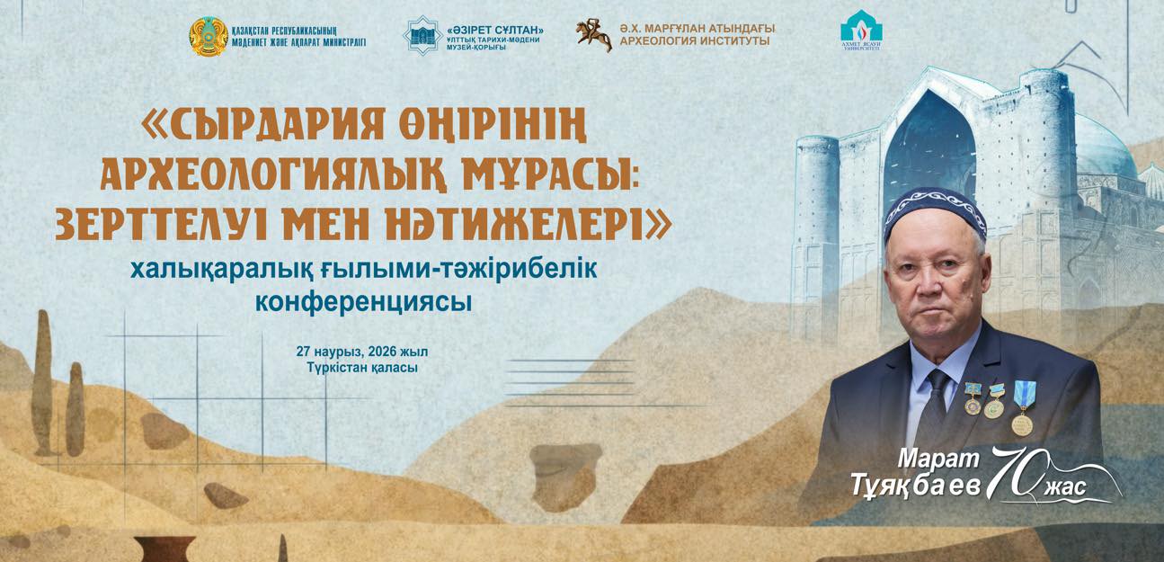 «Әзірет Сұлтан» Ұлттық тарихи-мәдени музей-қорығының ұйымдастыруымен белгілі археолог, тарих ғылымдарының кандидаты, ғалым Марат Тұяқбаевтың 70 жылдығына арналған «Сырдария өңірінің археологиялық мұрасы: зерттелуі мен нәтижелері» атты халықаралық ғылыми-тәжірибелік конференция өтеді.