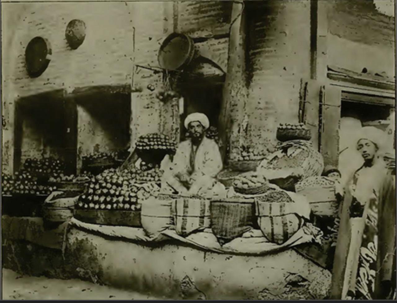 Известный ученый и архитектор Г.А.Пугаченкова пишет, что в Средней Азии было пять типов рынков: первый — рынок в виде ряда лавок вдоль главной улицы, эта улица-рынок начиналась около западного угла мавзолея и тянулась до ворот Жеты Ата. Рынок улицы Жеты Ата: помимо лавок, вдоль улицы располагались также чайханы, столовые и гостиницы. На стенах по обеим сторонам улицы горизонтально лежали тонкие бревна, покрытые циновкой, сплетенной из тростника. Каждый владелец магазина был обязан опрыскивать водой свою территорию, подметать ее и накрывать крышей.