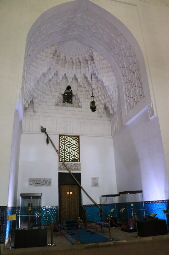 Переступая порог центральной входной двери, посетитель сразу попадает в центральный зал — казандык, который представляет собой огромное квадратное помещение со сторонами 18,5 м. В центре помещения стоит огромный котел — шедевр средневекового бронзолитейного искусства, работы ‘Абд ал- Азиза ибн устад Шараф ад-дина Табризи.