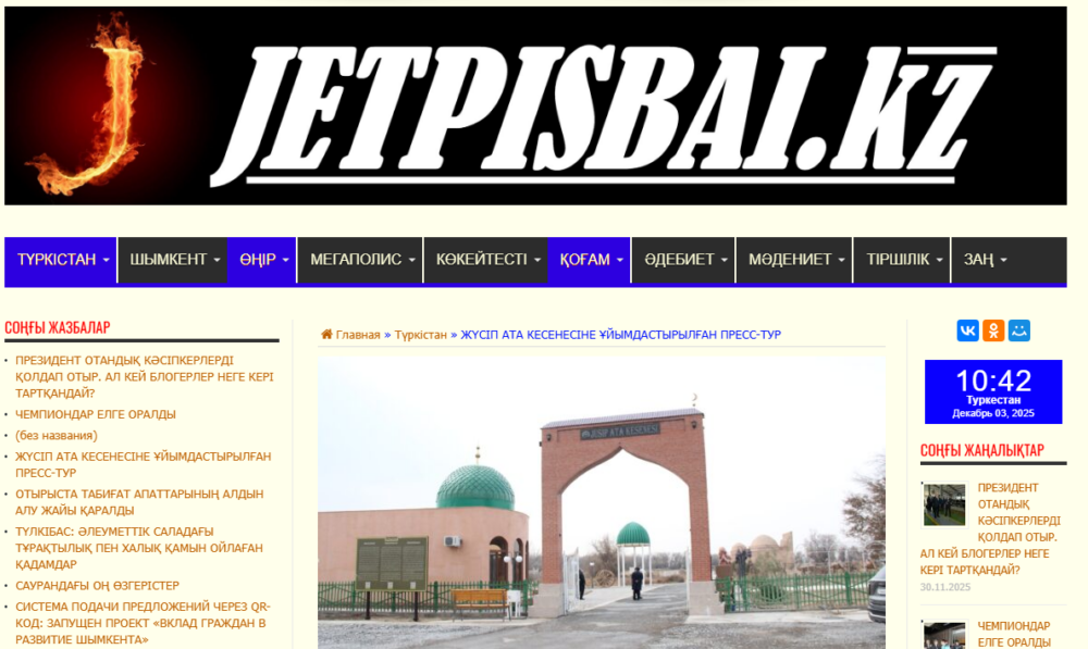 Жүсіп ата: историческая личность, легенды и история мавзолеяТелеарна «Turkistan TV» Передвижной выставка «Түркістан – мыңжылдықтар сәулесі»«Кызылординские вести» Работа по развитию паломнического туризмаТелеарна «Turkistan TV» Состоялся Пресс-тур в мавзолей Жүсіп Ата«77TV TURKISTAN» телеарнасы Состоялся Пресс-тур в мавзолей Жүсіп АтаJetpisbai.kz Артефакты, дошедшие с эпохи Амир ТемураТелеарна «Turkistan TV» В Восточно-Казахстанской области открылась выставка «Туркестан – свет тысячелетия»ЕДИНАЯ ПЛАТФОРМА ИНТЕРНЕТ-РЕСУРСОВ ОРГАНОВ ГОСУДАРСТВЕННОЙ ВЛАСТИ Выставка «Туркестан. Свет тысячелетий» в КокшетауАкмолинский областной филиал АО «РТРК «Казахстан» - Телеканал «Кокше» ЖИЗНЬ, ОТРАЖЕННАЯ В МУЗЕЕТЕЛЕКАНАЛ "77ТВ" Выставка «Туркестан – свет тысячелетия»ТЕЛЕКАНАЛ «ERTIS» Выставка «Туркестан – свет тысячелетия»Павлодарский областной краеведческий музей имени Г.Н. Потанина Подписание меморандума о сотрудничестве между Государственным Эрмитажем и Национальным музеем — заповедником «Азрет Султан»Санкт-Петербургский международный форум объединенных культур