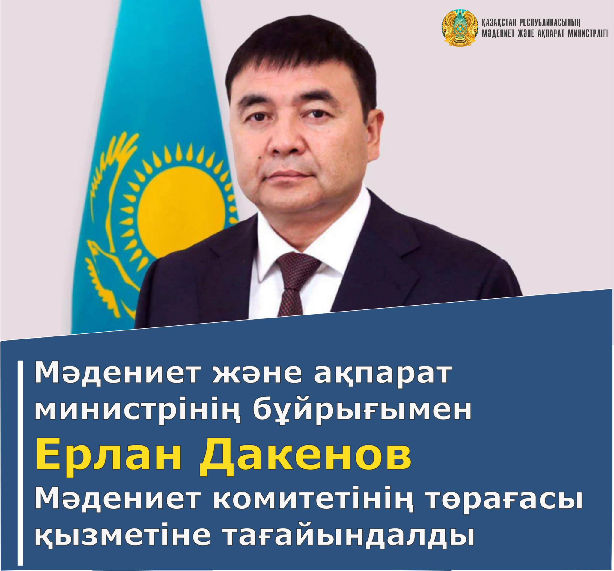 Приказом Министра культуры и информации Ерлан Дакенов назначен на должность председателя Комитета культуры.