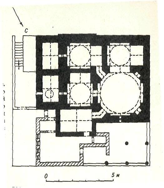 «Хаммами мухтасар» строились таким образом, что их помещения наполовину заглублялись в землю для лучшего сохранения тепла, и снаружи выступали лишь купола (надеемся понятно, почему наша баня расположена в низине). Подобные бани имели два отдельных отделения — для мужчин и женщин, однако чаще всего они обслуживали женщин и мужчин поочерёдно: один день — женщин, другой — мужчин.